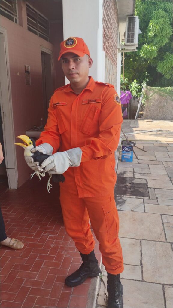 Na tarde desta terça-feira, (20), uma equipe do 3º Grupamento do Corpo de Bombeiros Militar (GBM) de Corumbá realizou um resgate de um filhote de tucano que estava em situação de vulnerabilidade no Jardim da Praça Independência, uma área de grande movimentação pública na cidade.