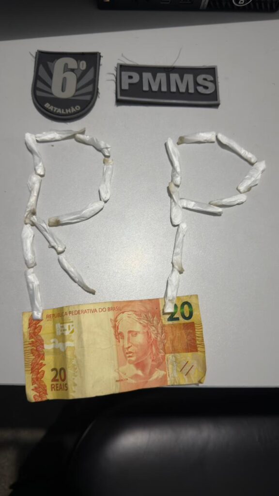 Jovem de 20 anos é detido com 19 porções de cocaína já embaladas e confessa a prática de Prisão Tráfico Corumbá em área de patrulhamento ostensivo.