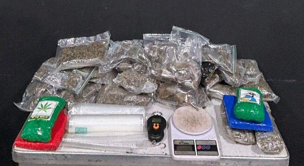 Após a moradora franquear a entrada, a equipe realizou buscas no imóvel, quando foram localizados 31 tabletes de maconha escondidos no sofá do quarto, totalizando 4,87 quilos da droga. Além disso, foram apreendidos 95 sacos plásticos tipo zip lock, dois rolos de embalagem a vácuo e duas balanças digitais de precisão, todos materiais utilizados na preparação e venda do entorpecente.