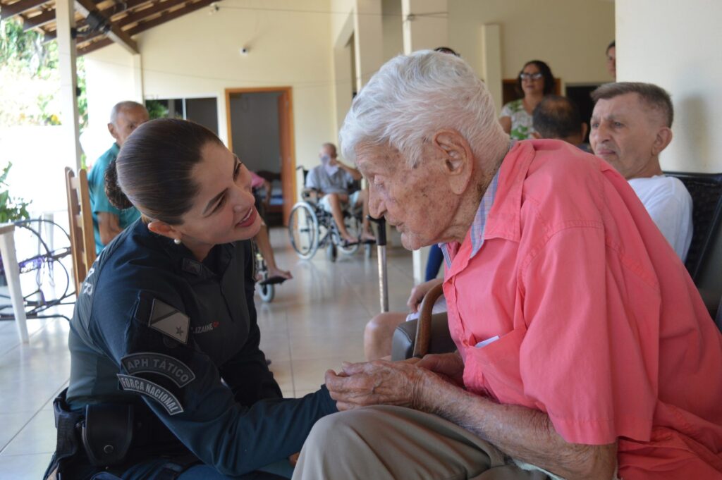 A iniciativa teve como objetivo aproximar os policiais dos idosos, fortalecendo o cuidado, o respeito e a valorização dessa importante parcela da população. Durante a visita, os militares compartilharam histórias, tocaram violão e participaram de atividades interativas, levando momentos de alegria, carinho e descontração aos moradores da instituição.