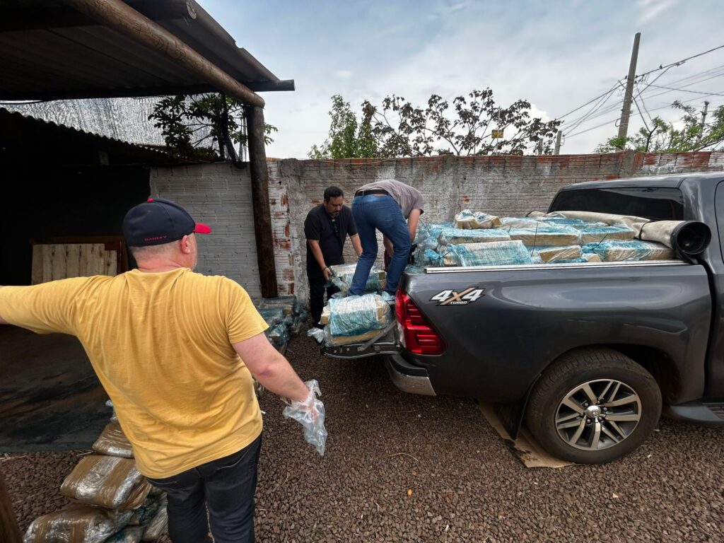 Uma equipe se deslocou até o local, adentrou o imóvel e encontrou caixas de papelão contendo diversos tabletes de maconha, com peso estimado de 1.100kg da substância.