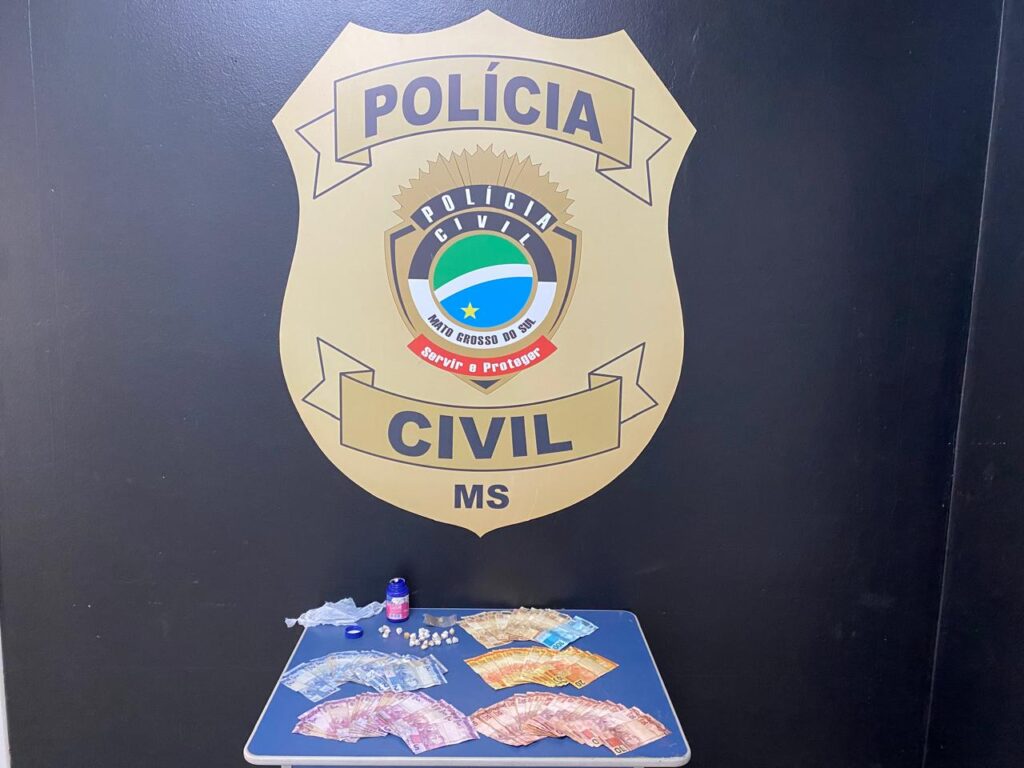 O imóvel, que funcionava como bar e residência nos fundos, vinha sendo investigado pela Polícia Civil por suspeita de tráfico de entorpecentes. Durante a ação de busca e apreensão realizada nesta data, um homem de 27 anos foi flagrado na posse de 27 pedras de crack e de grande quantidade de dinheiro em notas variadas, indicativo da prática ilícita.