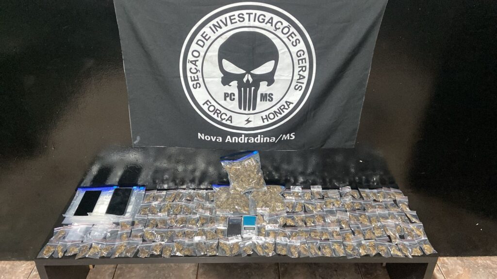 A Polícia Civil do Mato Grosso do Sul, por intermédio da Delegacia de Nova Andradina, prendeu em flagrante, nesta sexta-feira (3), dois homens de 23 e 18 anos por tráfico de drogas e associação para o tráfico. As investigações tiveram início após o Núcleo Regional de Inteligência (NRI) receber denúncias anônimas informando que uma residência no município estaria sendo utilizada como ponto de armazenamento e comercialização de entorpecentes, com intensa movimentação de usuários ao longo do dia.