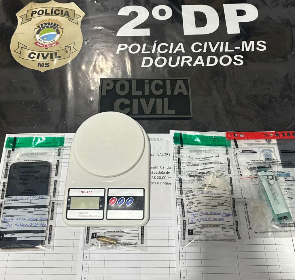 A 2ª Delegacia de Polícia de Dourados realizou, na tarde desta segunda-feira (13), uma ação que resultou na prisão em flagrante de um homem de 28 anos pelos crimes de tráfico de drogas e posse irregular de munição de uso permitido, no Bairro Esplanada, em Dourados.
