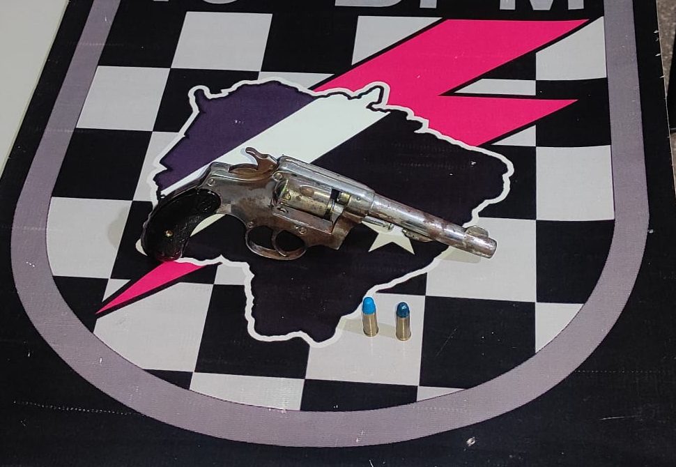 Durante a revista veicular, os militares localizaram, em compartimento oculto sob o banco do motorista, um revólver calibre .32 sem numeração, municiado com duas munições intactas. O condutor do automóvel não apresentou documentação que comprovasse porte ou registro da arma, motivo pelo qual recebeu voz de prisão.