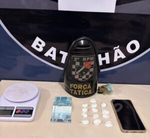 Durante a ação, foram apreendidas 332 porções (“trouxinhas”) totalizando 209 gramas de cocaína; 314 gramas da substância dilacerada; e duas barras somando 449 gramas. Também foram recolhidas quatro balanças de precisão, tesouras, facas, cola industrial e materiais usados para embalar o entorpecente.