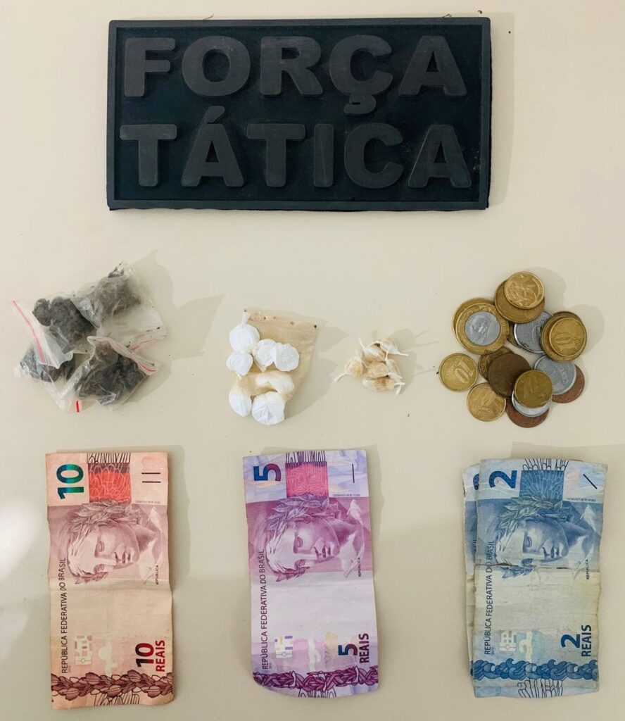 Durante busca para verificar o que havia sido colocado na parede, constataram ser um embrulho contendo: 4 porções de maconha (totalizando 7,2 gramas); 6 porções de crack (totalizando 1 gramas); 6 porções de cocaína (totalizando 4,9 gramas).