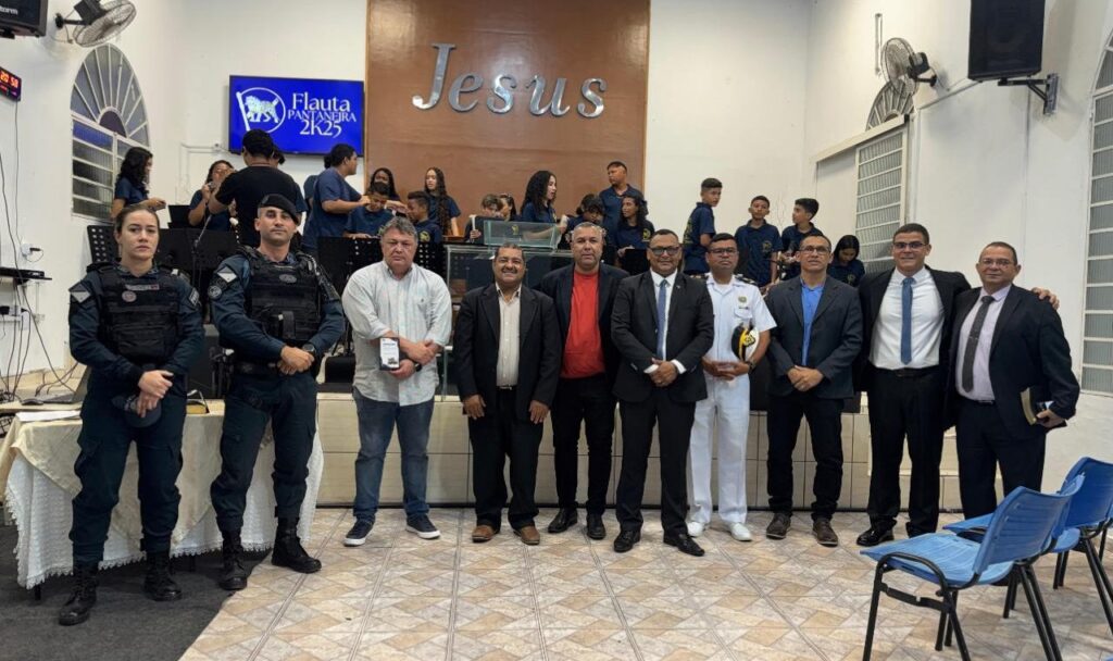 Ladário (MS) – Na noite de segunda-feira (27/10), o 6º Batalhão de Polícia Militar marcou presença na formatura do Projeto Social Flauta Pantaneira, realizada na Igreja Assembleia de Deus, em Ladário (MS).